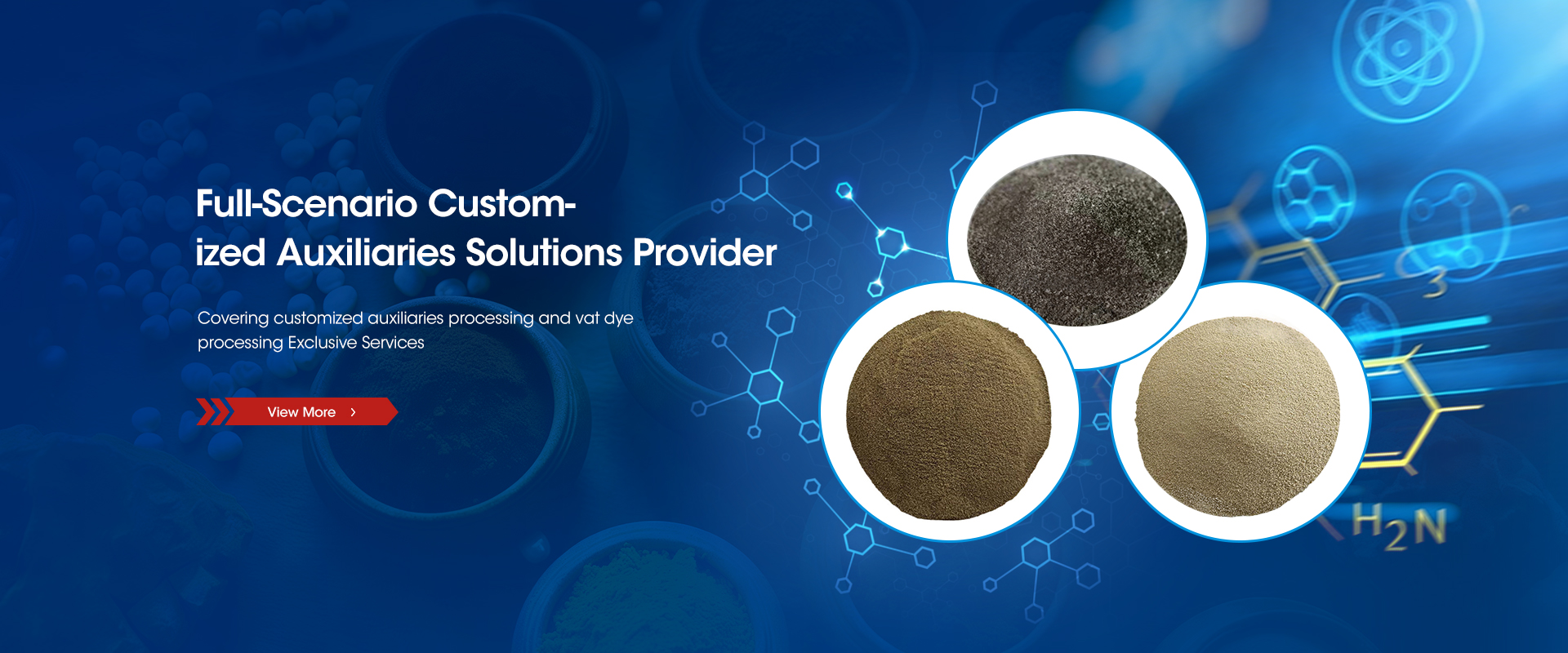 SHUANGHUANThe auxiliary agent service provider that fits your needs bestThe technical team of Double Ring boasts rich experience and complete supporting equipment in vat dye processing. It has achieved successful processing results for various types of vat dyes, including vat yellow, vat red, vat orange, vat purple, vat green, vat blue, vat brown and vat black. In accordance with the requirements of samples sent by customers, the team conducts post-processing of raw dyes (filter cakes and pastes) to turn them into commercial dyes with uniform quality and excellent application performance.